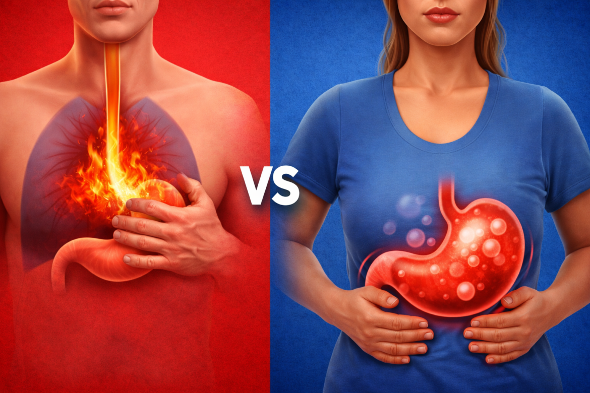 يرجع الخلط بين الحالتين إلى تشابه بعض الأعراض، خاصة الشعور بعدم الراحة بعد الأكل، لكن الفرق الأساسي يكمن في مكان الألم وطبيعته.