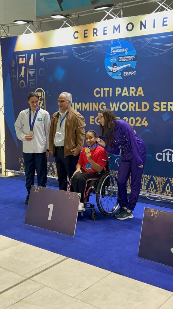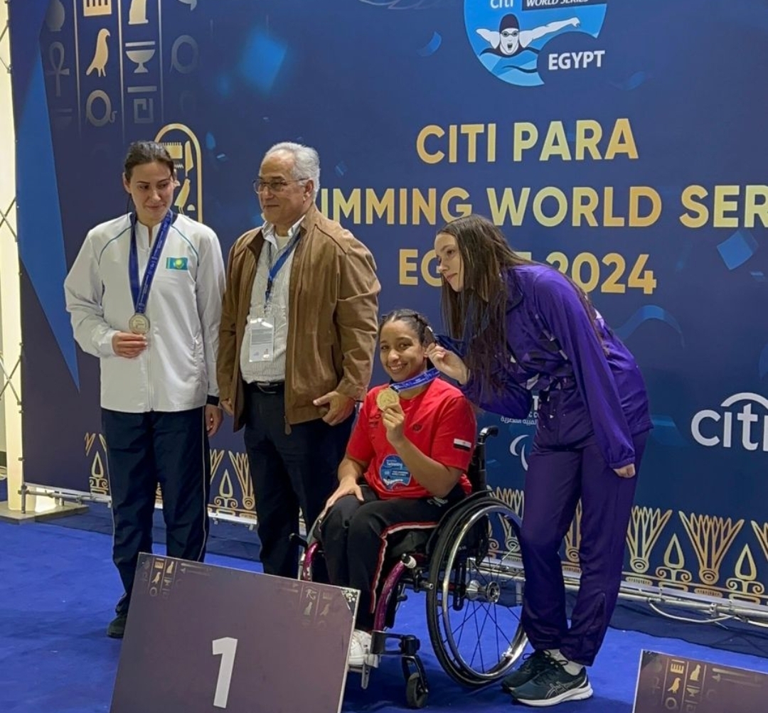 حققت السباحة أية أيمن الميدالية الذهبية في سباق 100 متر حرة بمنافسات بطولة كأس العالم للسباحة البارالمبيه والمقامة حاليا بالقاهرة.