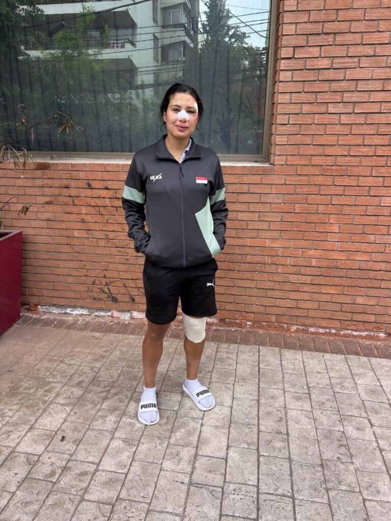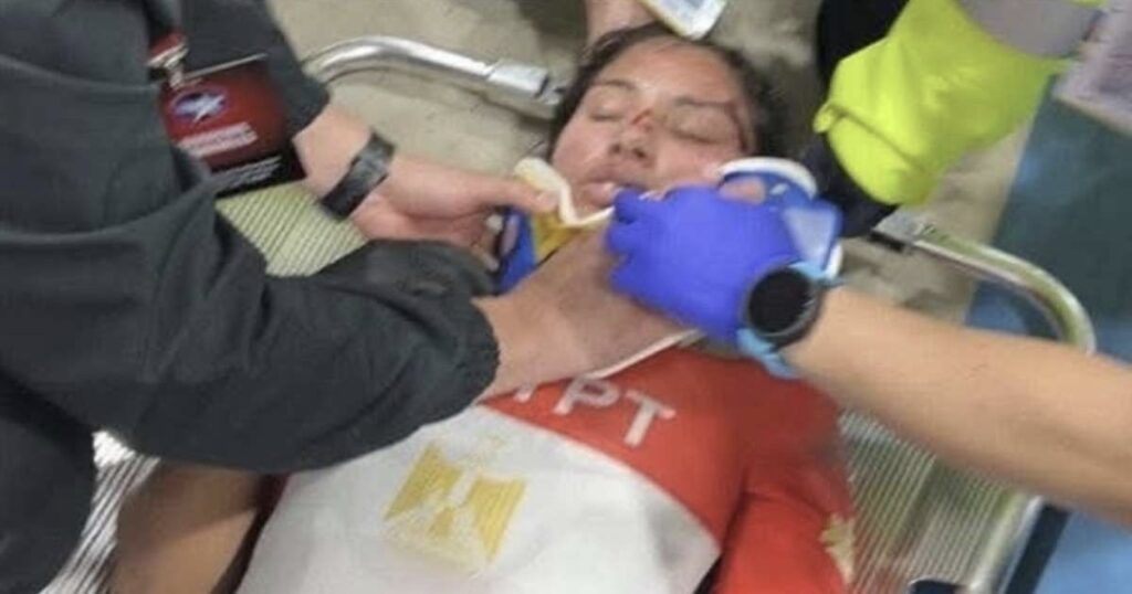 وأدى السقوط العنيف على المضمار إلى جرح قطعي وورم في منطقة الحاجب، بالإضافة إلى كدمات وسحجات متفرقة بالجسم، ما استدعى تدخلًا جراحيًا عاجلًا شمل خياطة داخلية وخارجية، وتم نقلها فورًا إلى المستشفى لتلقي الرعاية الطبية اللازمة.