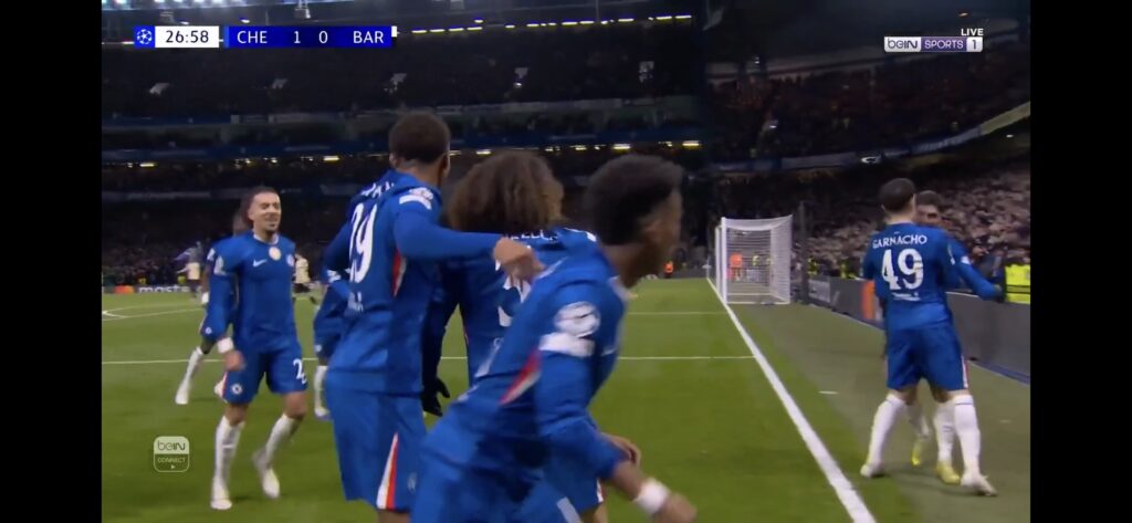 ورغم صمود برشلونة وتماسكه النسبي في البداية، جاءت الضربة الأولى في الدقيقة 27، حين ارتدت العرضية التي أرسلها مارك كوكوريلا من المدافع الفرنسي جول كوندي بالخطأ داخل مرماه، ليمنح البلوز الأفضلية.