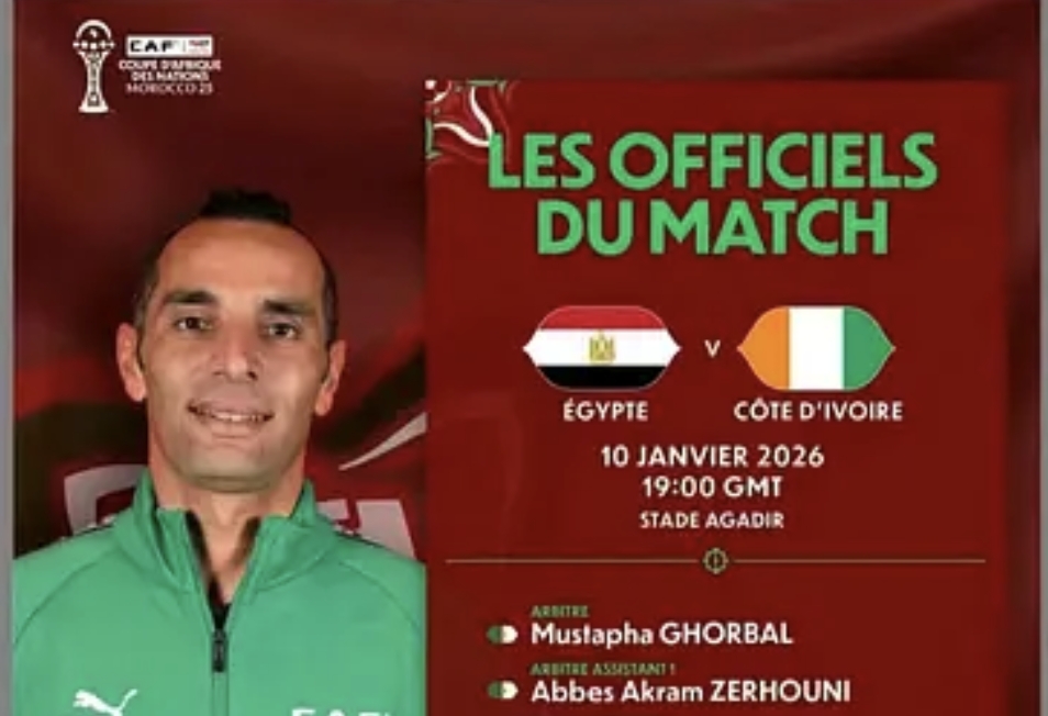 أعلن الاتحاد الإفريقي لكرة القدم طاقم حكم مباراة مصر وكوت ديفوار في ربع نهائي أمم إفريقيا.