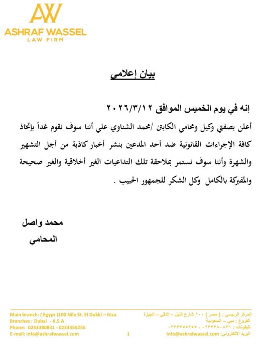 بيان محامي محمد الشناوي