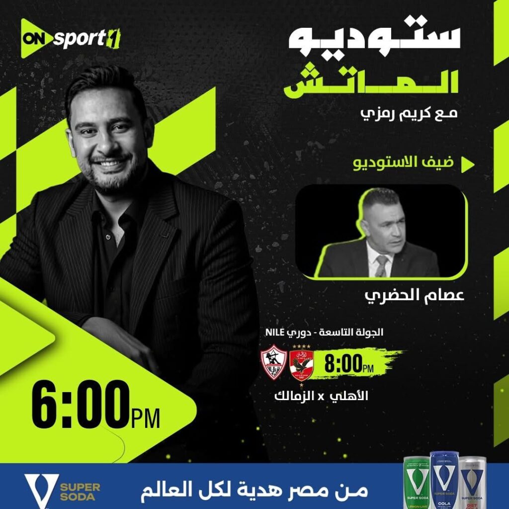 قبل انطلاق اللقاء بساعتين، ينطلق ستوديو الماتش في السادسة مساءً بعدة إطلالات تحليلية: