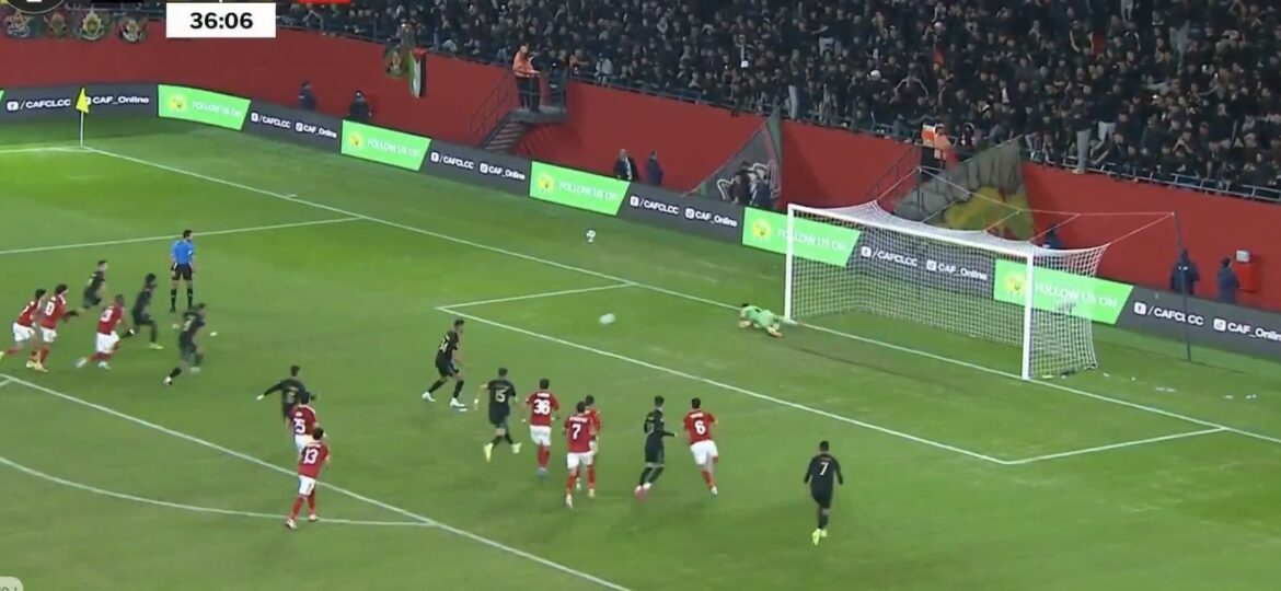 شهد الشوط الأول محاولات هجومية من الطرفين، قبل أن يتمكن الأهلي من تسجيل الهدف الأول عن طريق محمود حسن “تريزيجيه” بعد هجمة منظمة أنهت سيطرة المارد الأحمر على مجريات اللعب.