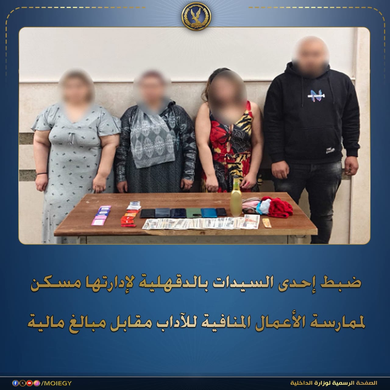 أكدت معلومات وتحريات الإدارة العامة لحماية الآداب بقطاع الشرطة المتخصصة قيام إحدى السيدات باستغلال شقة سكنية كائنة بدائرة قسم شرطة أول المنصورة لممارسة الأعمال المنافية للآداب العامة مقابل مبالغ مالية وبدون تمييز.