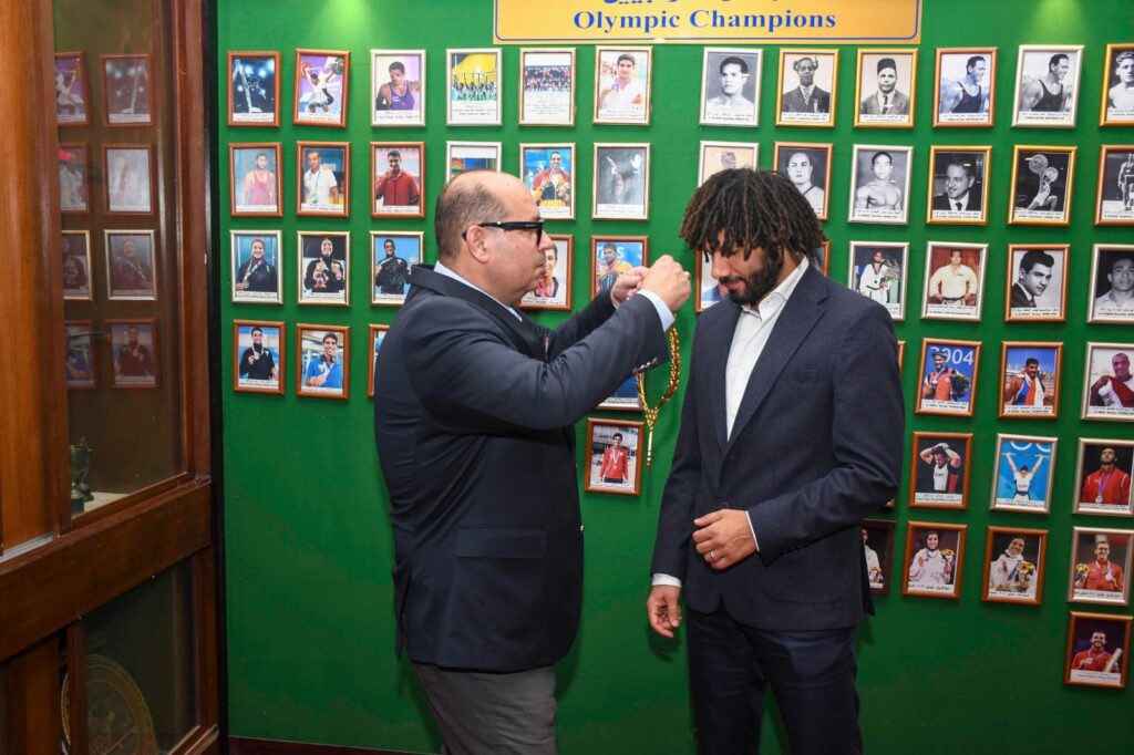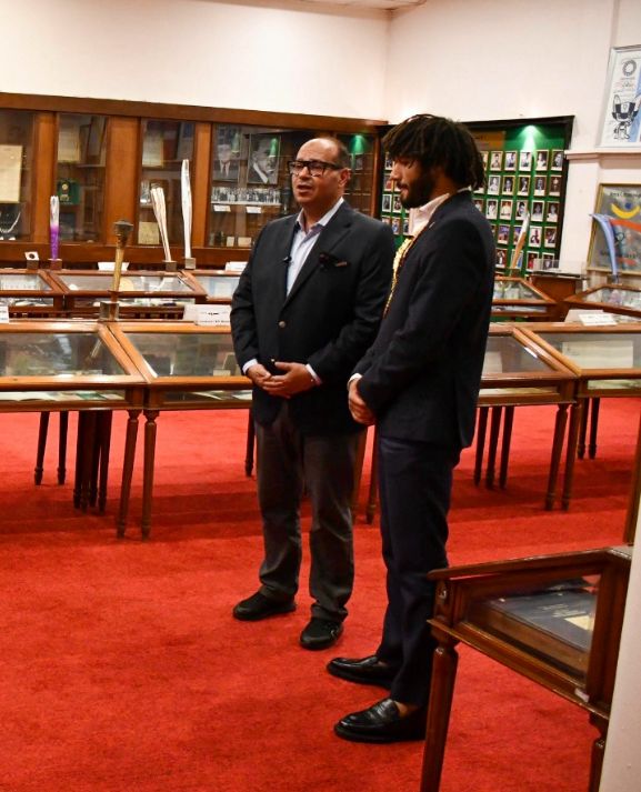 وحرص المهندس ياسر إدريس بعد ترحيبه بالنجم الدولى الشهير على اصطحابه فى جولة داخل المتحف الاوليمبي العريق بما يحمله من قصص تاريخية ووثائقية منذ ان نشأت الأولمبياد مرورا بكل مراحلها عبر التاريخ القديم وحتى النسخة الأحدث فى دورة الألعاب السابقة فى باريس 2024.