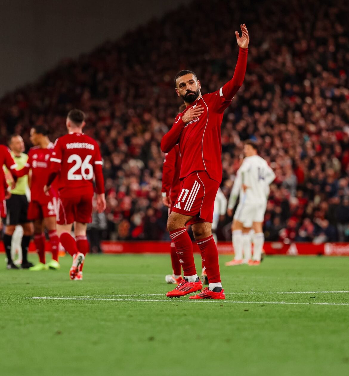 وفي تصريحات بعد اللقاء، أعرب صلاح عن سعادته بالوصول إلى هذا الإنجاز، قائلًا:”أنا فخور بكل ما حققته حتى الآن، وأشكر زملائي والجماهير على دعمهم الدائم. الأهم بالنسبة لي أن أواصل مساعدة الفريق وتحقيق الانتصارات.”