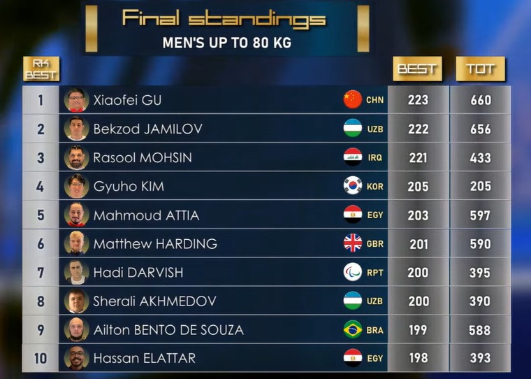 حقق بطل مصر البارالمبى محمود صبري المركز الثالث والميدالية البرونزية في وزن تحت 80 كجم في المجموع بمجموع 597 كجم ببطولة العالم لرفع الاثقال البارالمبي والتى تقام بالعاصمة الإدارية الجديدة.